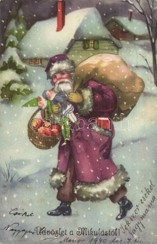 Üdvözlet a Mikulástól! / Christmas greeting card with Saint Nicholas. ... https://www.darabanth.com/de/342-Fernauktion/342.0/Ansichtskarten/GruC39Fkarten-Feste~2000069/Udvozlet-a-Mikulastol-Christmas-greeting-card-with-Saint-Nicholas-HWB-Ser-4464-EK~II1931194