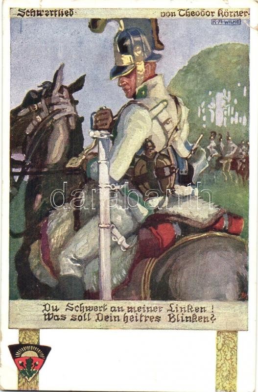 Beschreibung: Schwerlied von Theodor Körner / German military art postcard s: K. A. Wilke (kis szakadás / small tear)