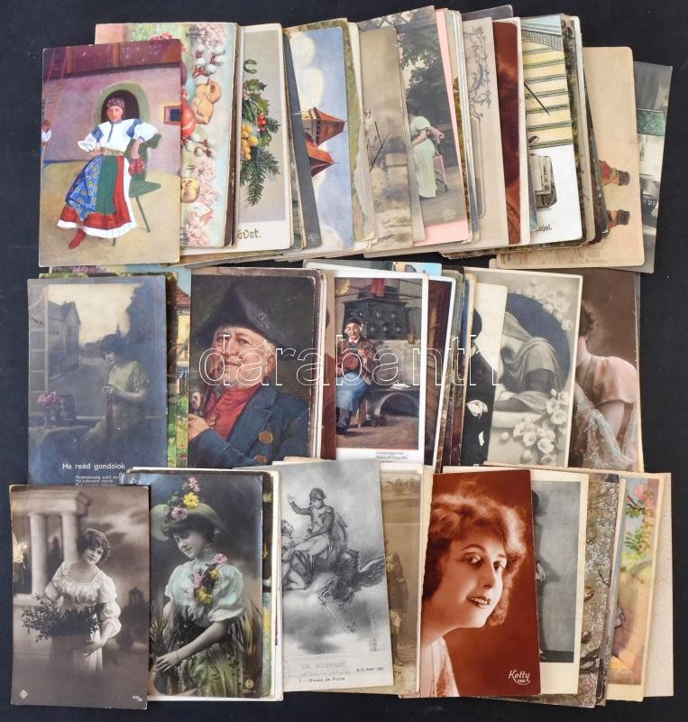 100 db régi vegyes üdvözlőlap: ünnepek, folklór, hölgyek, művészlapok, humor, stb. / 100 pre-1945 mixed greeting cards: holidays, folklore, ladies, art postcards, humour, etc.