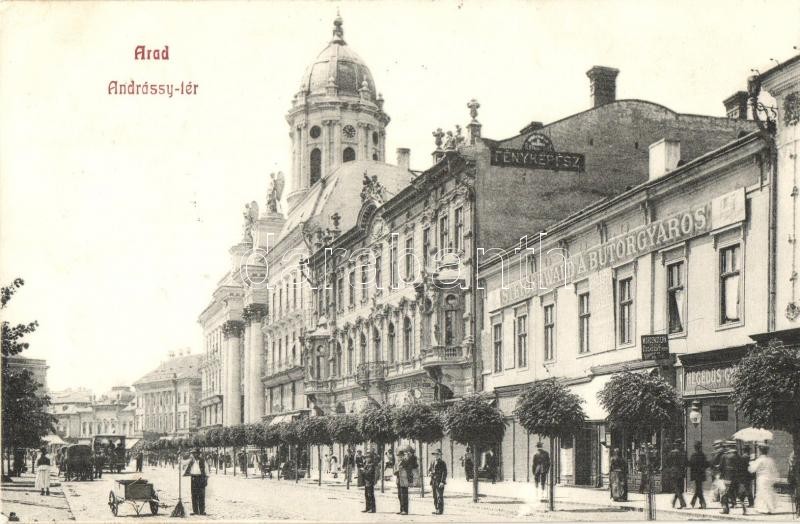 1908 Arad, Andrássy tér, Hegedűs Gy., Morgenstern Gyula fogász, Steigerwald A. bútorgyáros, fényképész és Geller I. üzlete. Keppich Zsigmond kiadása / square, shops