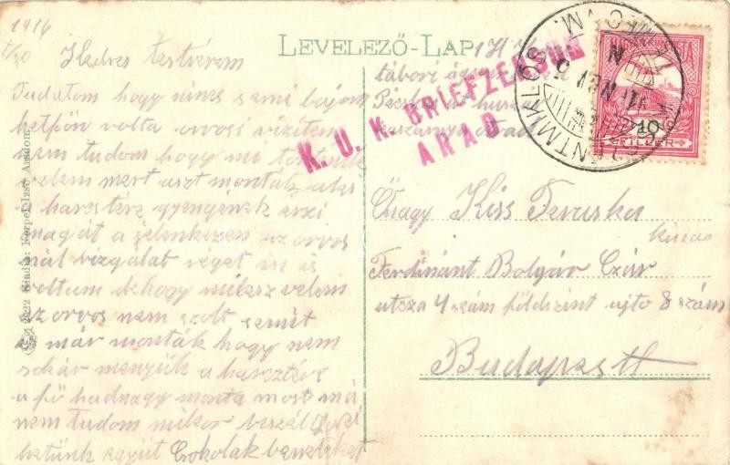 Arad, vár. Kiadja Kerpel Izsó / castle + 1916 K.u.K. Briefzensur Arad ... https://www.darabanth.com/de/342-Fernauktion/342.0/Ansichtskarten/Siebenburgen~2000005/Arad-var-Kiadja-Kerpel-Izso-castle-plus-1916-KuK-Briefzensur-Arad-EK~II1930177