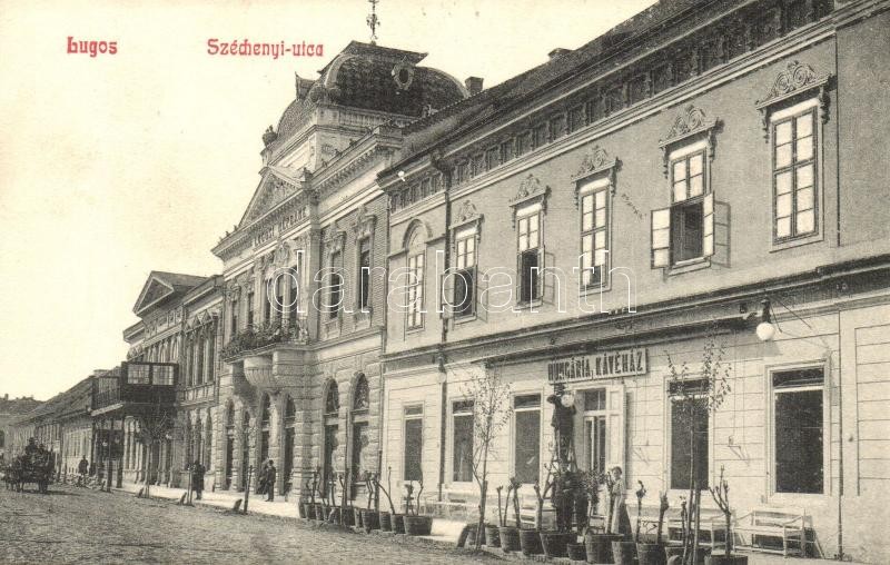 Lugos, Lugoj; Széchenyi utca, Hungária Kávéház, Népbank / street, cafe... https://www.darabanth.com/de/342-Fernauktion/342.0/Ansichtskarten/Siebenburgen~2000005/Lugos-Lugoj-Szechenyi-utca-Hungaria-Kavehaz-Nepbank-street-cafe-bank~II1729975