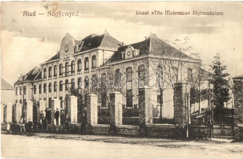 Nagyenyed, Aiud; Liceul Titu Maiorescu / gimnázium / high school (fa) https://www.darabanth.com/de/342-Fernauktion/342.0/Ansichtskarten/Siebenburgen~2000005/Nagyenyed-Aiud-Liceul-Titu-Maiorescu-gimnazium-high-school-fa~II1927885