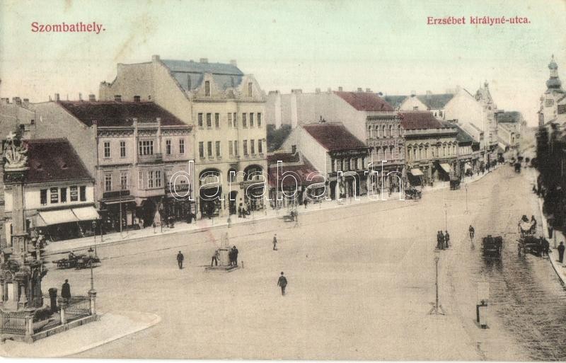 1911 Szombathely, Erzsébet királyné utca, Szentháromság szobor, Schust... https://www.darabanth.com/de/342-Fernauktion/342.0/Ansichtskarten/Ungarn~2000004/1911-Szombathely-Erzsebet-kiralyne-utca-Szentharomsag-szobor-Schuster-Gyula-uzlete~II1926419