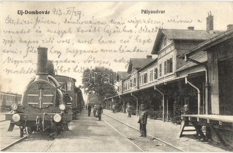 1913 Dombóvár, Újdombóvár vasútállomás, pályaudvar, vasutasok, gőzmozd... https://www.darabanth.com/de/342-Fernauktion/342.0/Ansichtskarten/Ungarn~2000004/1913-Dombovar-Ujdombovar-vasutallomas-palyaudvar-vasutasok-gozmozdony-plus-Ujdombovar~II1887885