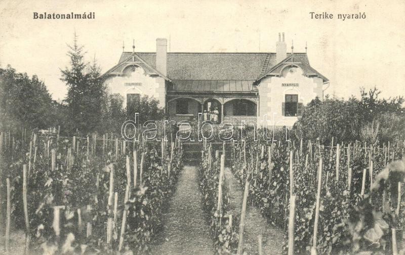Balatonalmádi, Terike nyaraló, villa, szőlő. Özv. Pethe Viktorné kiadá... https://www.darabanth.com/de/342-Fernauktion/342.0/Ansichtskarten/Ungarn~2000004/Balatonalmadi-Terike-nyaralo-villa-szolo-Ozv-Pethe-Viktorne-kiadasa-EK~II1770748