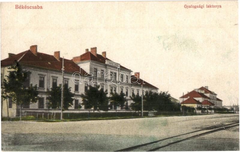 Békéscsaba, Gyalogsági laktanya (vágott / cut) https://www.darabanth.com/de/342-Fernauktion/342.0/Ansichtskarten/Ungarn~2000004/Bekescsaba-Gyalogsagi-laktanya-vagott-cut~II1925135