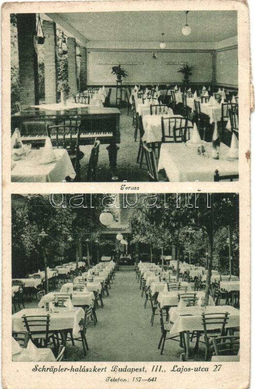 Budapest II. Schräpler halászkert, belső zongorával. Lajos utca 27. (... https://www.darabanth.com/de/342-Fernauktion/342.0/Ansichtskarten/Ungarn~2000004/Budapest-II-Schrapler-halaszkert-belso-zongoraval-Lajos-utca-27-EK~II1931016