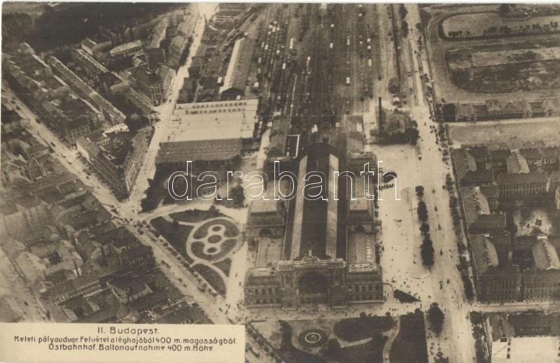 Budapest VII. Keleti pályaudvar. Légi felvétel a léghajóból 400 méter magasságból. Kral Sándor tüzérkapitány, a magyar aero-klub kapitányának felvétele / aerial view from an airship