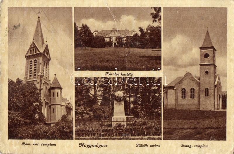 Nagymágócs, Római katolikus templom, Evangélikus templom, Hősök szobra... https://www.darabanth.com/de/342-Fernauktion/342.0/Ansichtskarten/Ungarn~2000004/Nagymagocs-Romai-katolikus-templom-Evangelikus-templom-Hosok-szobra-Karolyi-kastely-fa~II1896943