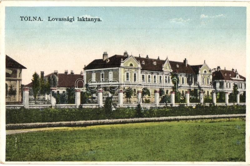 Tolna, Lovassági laktanya. Kiadja Özv. Bruckner Nándorné (fl) https://www.darabanth.com/de/342-Fernauktion/342.0/Ansichtskarten/Ungarn~2000004/Tolna-Lovassagi-laktanya-Kiadja-Ozv-Bruckner-Nandorne-fl~II1925127