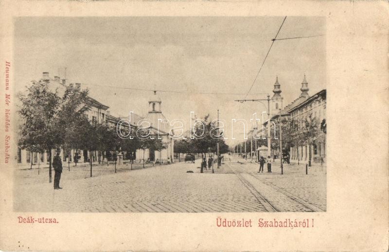 Szabadka, Subotica; Deák utca. Kiadja Heumann Mór / street view (EK) https://www.darabanth.com/de/342-Fernauktion/342.0/Ansichtskarten/Vojvodina~2000009/Szabadka-Subotica-Deak-utca-Kiadja-Heumann-Mor-street-view-EK~II1930934