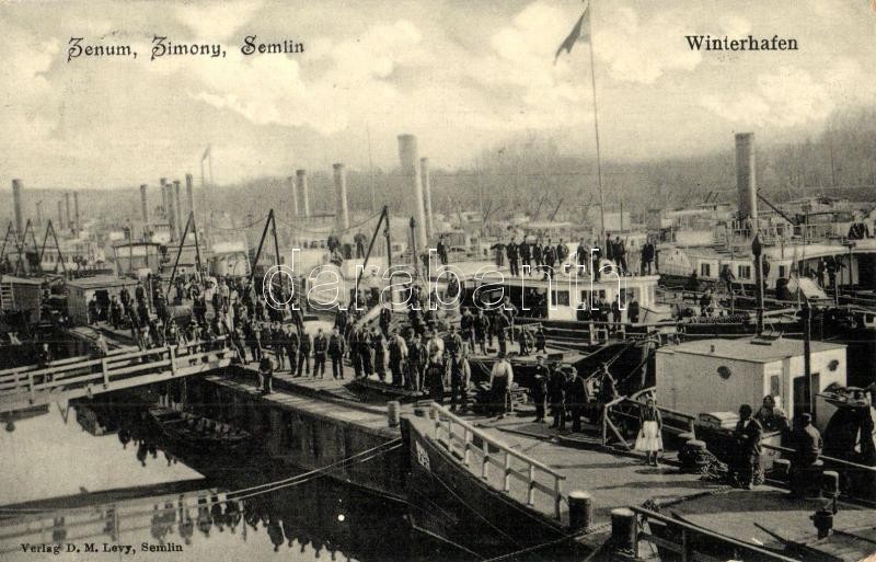 Zimony, Semlin, Zemun; Winterhafen / Téli kikötő, gőzhajók. Kiadja D. ... https://www.darabanth.com/de/342-Fernauktion/342.0/Ansichtskarten/Vojvodina~2000009/Zimony-Semlin-Zemun-Winterhafen-Teli-kikoto-gozhajok-Kiadja-D-M-Levy-Photo-Glanz-wi~II1888372