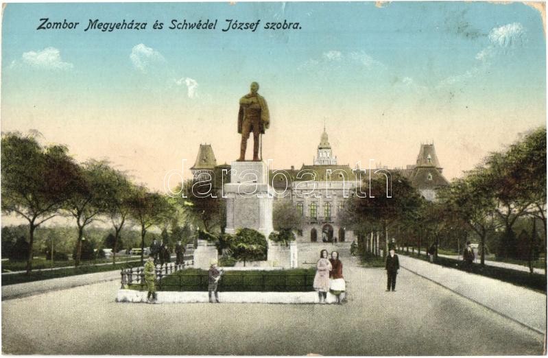 Zombor, Sombor; Megyeháza és Schweidel József szobor / county hall, st... https://www.darabanth.com/de/342-Fernauktion/342.0/Ansichtskarten/Vojvodina~2000009/Zombor-Sombor-Megyehaza-es-Schweidel-Jozsef-szobor-county-hall-statue-kopott-sarok-worn-c~II1932135