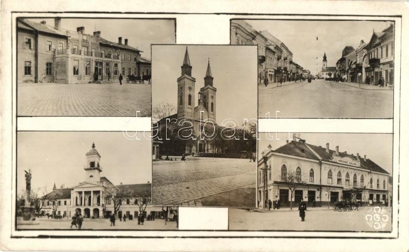 Zombor, Sombor; Városháza, Karmelita templom, Vadászkürt szálloda, utcaképek, üzletek. Kiadja Schlotzer József / town hall, Carmelite church, hotel, street view, shops (EK)