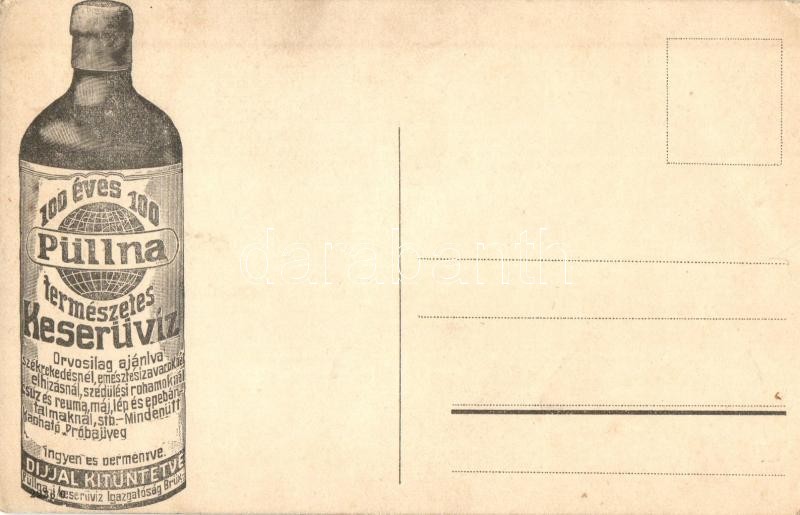 Püllna természetes keserűvíz 100 éves / Hungarian natural mineralwater... https://www.darabanth.com/de/342-Fernauktion/342.0/Ansichtskarten/Werbungen~2000061/Pullna-termeszetes-keseruviz-100-eves-Hungarian-natural-mineralwater-advertisement-EB~II1932050
