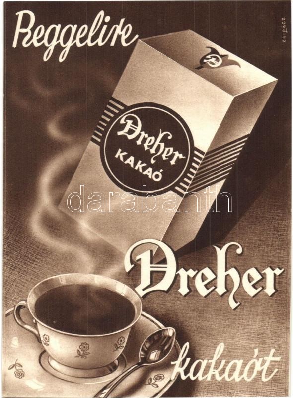 Beschreibung: Reggelire Dreher kakaót! Dreher kakaópor reklámlap / Hungarian Dreher cocoa powder advertisement s: Kripácz