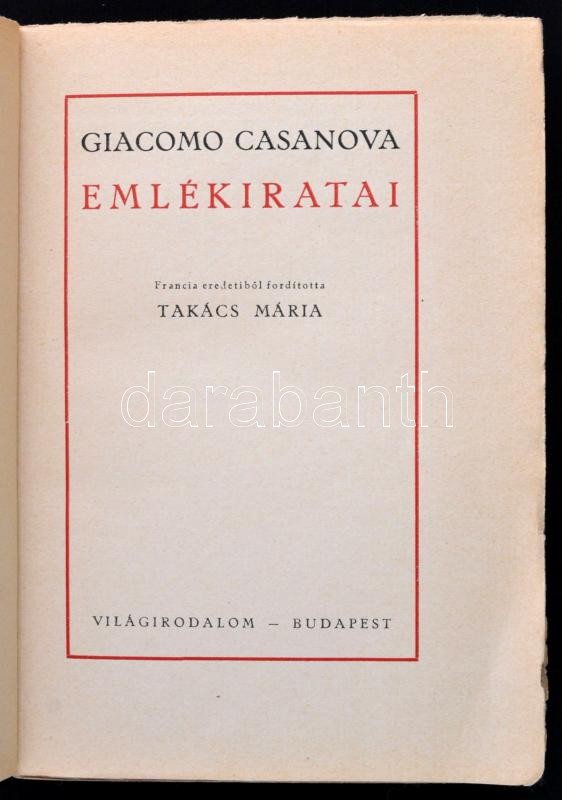 Giacomo Casanova Emlékiratai. Fordította Takács Mária. Bp.,(1925), Vil... https://www.darabanth.com/de/342-Fernauktion/342.0/Bucher/Bucher-Andere-kuriositaten~1000019/Giacomo-Casanova-Emlekiratai-Forditotta-Takacs-Maria-Bp-1925-Vilagirodalom-KonyvkiadovC3~II1926347