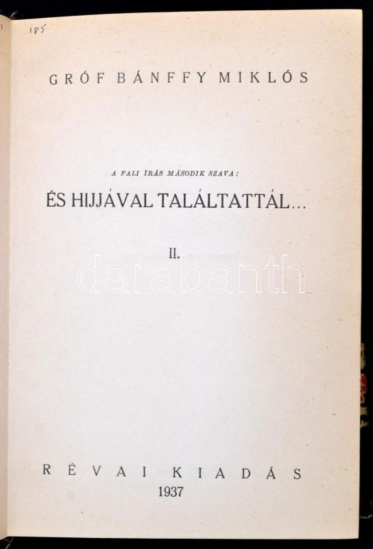 Gróf Bánffy Miklós: És hijjával találtattál... I-II. Bp., 1937, Révai.... https://www.darabanth.com/de/342-Fernauktion/342.0/Bucher/Bucher-Andere-kuriositaten~1000019/Grof-Banffy-Miklos-Es-hijjaval-talaltattal-I-II-Bp-1937-Revai-Kiadoi-egeszvaszon~II1927261