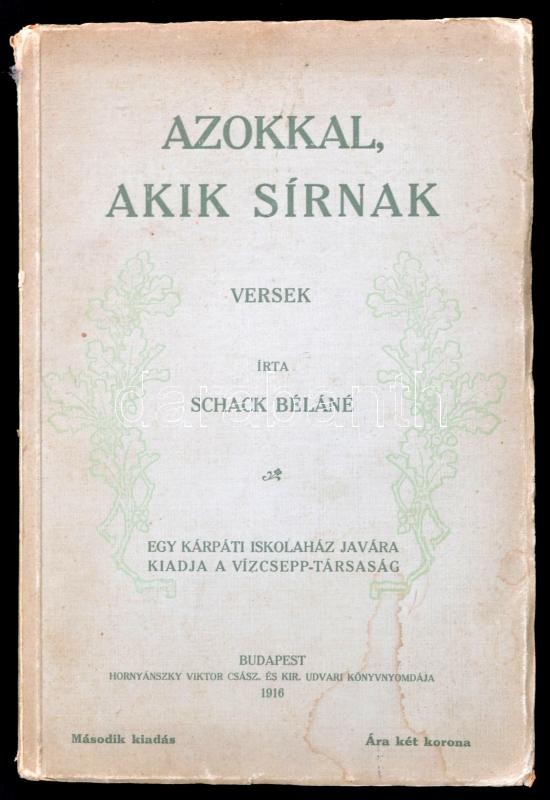 Schack Béláné: Azokkal, akik sírnak. Bp., 1916, Hornyánszky. Papírköté... https://www.darabanth.com/de/342-Fernauktion/342.0/Bucher/Bucher-Andere-kuriositaten~1000019/Schack-Belane-Azokkal-akik-sirnak-Bp-1916-Hornyanszky-Papirkotesben-jo-allapotban~II1929391