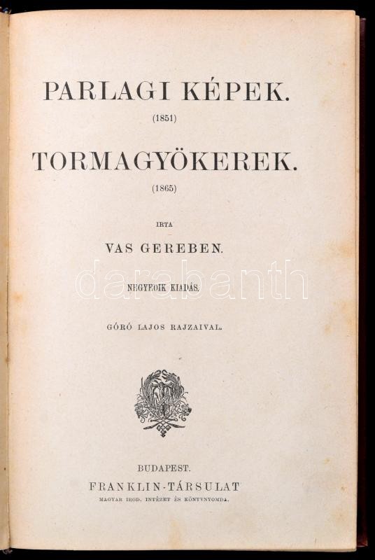 Vas Gereben összes munkái 3 kötet - Barabás Ábel: Vas Gereben. Bp., 1906, Franklin; Vas Gereben: Tekintetes urak és kisebb elbeszélések. Bp., Franklin; Vas Gereben: Parlagi képes, Tormagyökerek. Bp., Franklin. Kiadói egészvászon kötés, kissé kopottas állapotban.