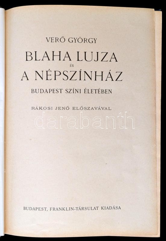 Verő György: Blaha Lujza és a Népszínház Budapest színi életében. Rákosi Jenő előszavával. Bp., 1926, Franklin-Társulat. Kiadói aranyozott, 328 p.