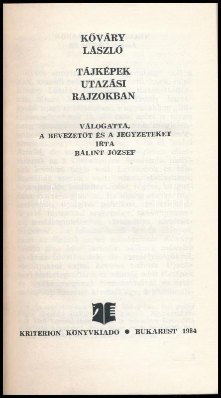 Beschreibung: Kőváry László: Tájképek utazási rajzokban. Válogatta, a bevezetőt és a jegyzeteket írta Bálint József. Téka. Bukarest, 1984, Kriterion. Kiadói kartonált papírkötés.