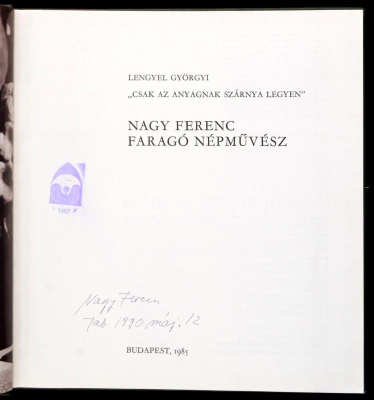 Vegyes művészeti könyvtétel, 2 db: Domanovszky György: Kántor Sándor. Népművészet mesterei 1. Bp.,1977, Népi Iparművészeti Tanács. Kiadói egészvászon-kötés, kiadói papír védőborítóban. Lengyel Györgyi: "Csak az anyagnak szárnya legyen." Nagy Ferenc faragó népművész. Bp.,1985, Népi Iparművészeti Tanács. Kiadói egészvászon-kötés. A művész által aláírt, dátumozott.