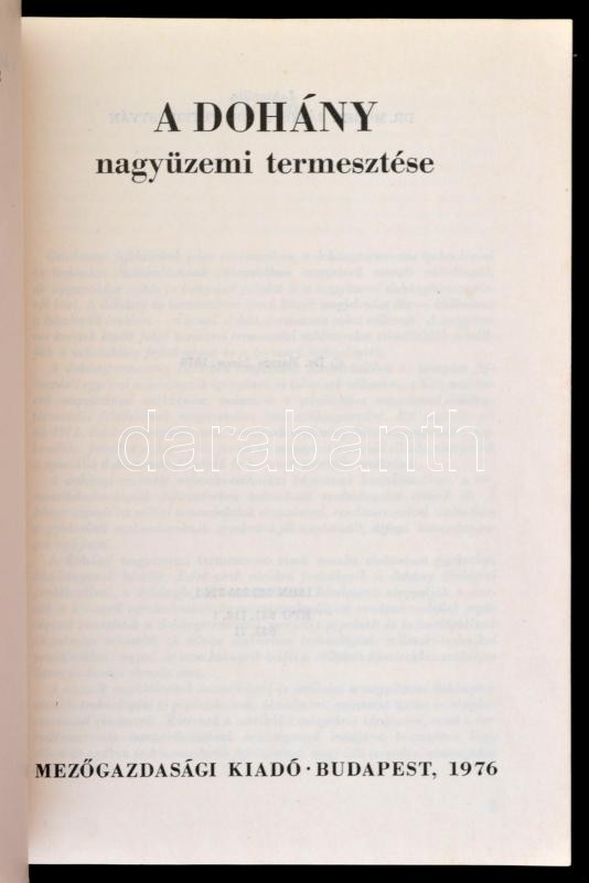 A dohány nagyüzemi termesztése. Szerk.: Dr. Borsos János. Bp.,1976, Me... https://www.darabanth.com/de/342-Fernauktion/342.0/Bucher/Bucher-Gastronomie-und-Gartnerei~1000007/A-dohany-nagyuzemi-termesztese-Szerk-Dr-Borsos-Janos-Bp-1976-Mezogazdasagi-Kiado-Kiad~II1691252