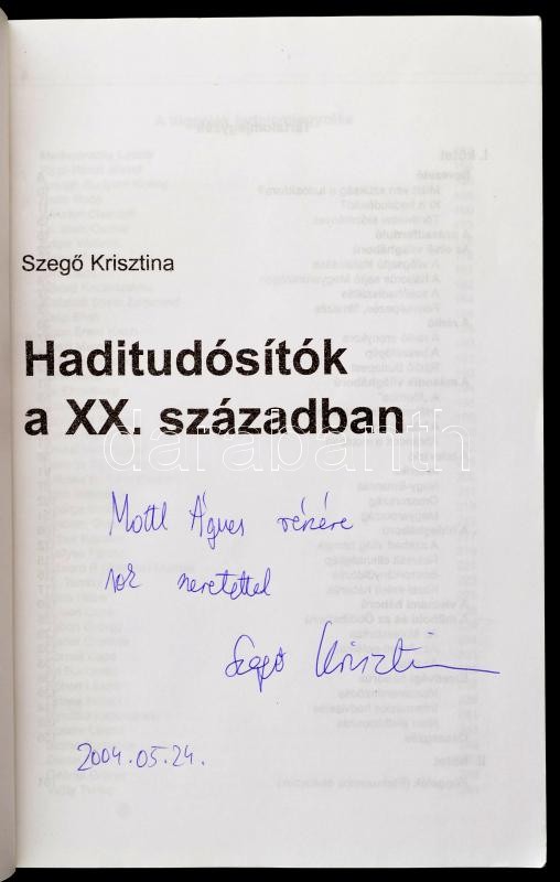 Szegő Krisztina: Haditudósítók a XX. században. Bp., 2004, ZMNE. Dedik... https://www.darabanth.com/de/342-Fernauktion/342.0/Bucher/Bucher-Militaria~1000005/Szego-Krisztina-Haditudositok-a-XX-szazadban-Bp-2004-ZMNE-Dedikalt-Papirkotesben-m~II1930102