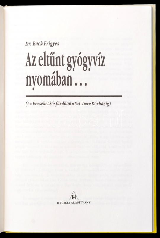 Back Frigyes: Az eltűnt gyógyvíz nyomában. Bp., é. n., Hygieia. Kartonált papírkötésben, jó állapotban.