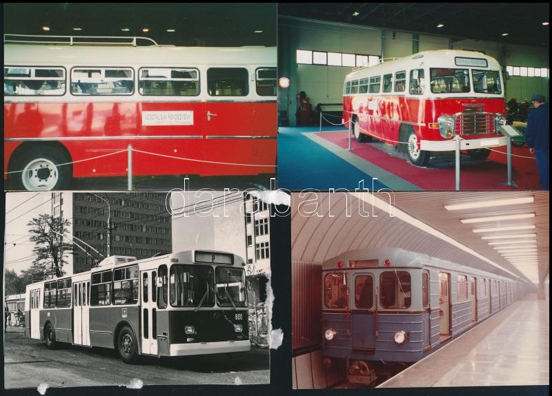 Beschreibung: BKV járművek forgalomban és kiállításon (troli, busz, metró), 4 db fekete-fehér és színes fotó, egyik sérüléssel, 9x12,5 cm