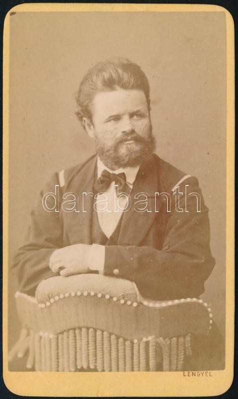 Füredi Keöd József (1839-1897) színész, balatoni és dunai hajóskapitány, szőlész, hajózási szakíró és 1880 körül. vizitkártya Lengyel Samu balatonfüredi műterméből 6x10 cm