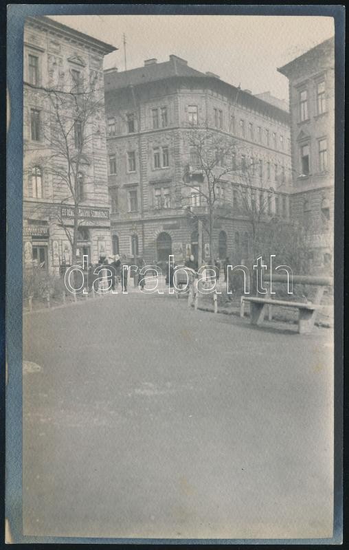 Beschreibung: cca 1910 Bp., az Almássy tér Wesselényi utca felőli sarka, 1920-as évekbeli előhívás, hátulján feliratozva, 14,5×9 cm
