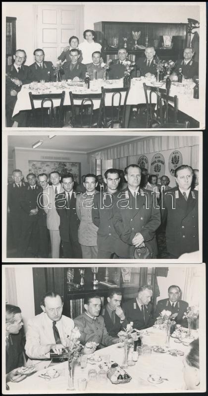 Beschreibung: cca 1930-1940 A Magyar Királyi Posta vezérkara, 3 db fotó, 9×14 cm