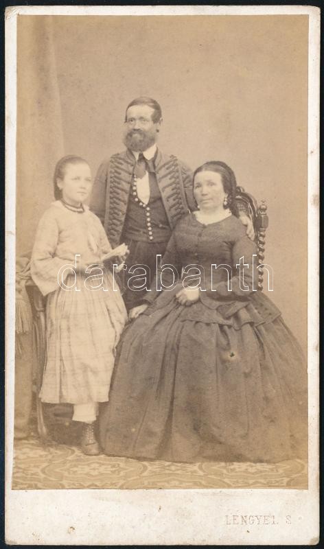 id. Keőd József és neje Amtman Katalin, Füredi Keöd József (1839-1897) színész, balatoni és dunai hajóskapitány szülei és testvére Keöd Katalin. Fotó Lengyel Samu balatonfüredi műtermét ábrázoló verzójú vizitkártyán n6,5x10,5 cm