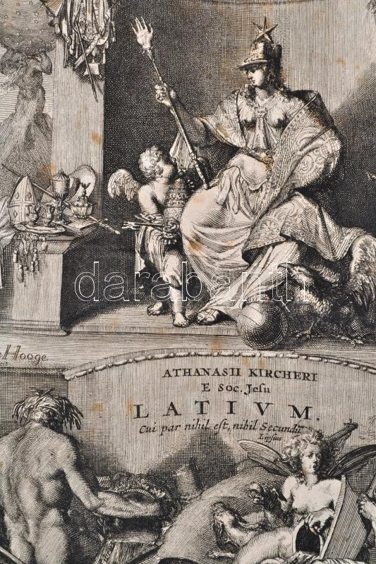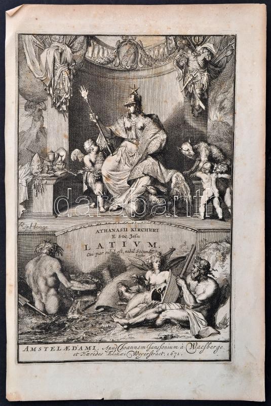 1671 Romeyn de Hooghe (1645-1708): Róma városának allegorikus ábrázolása, (in: Athanasius Kircher: Latium. Amsterdam, 1671, Johannes Janssonius van Waesberge), rézkarc, papír, 31x20 cm./ 1671 Romeyn de Hooghe (1645-1708): Allegorical representation of the city of Rome, (in: Athanasius Kircher: Latium. Amsterdam, 1671, Johannes Janssonius van Waesberge), copper engraving, paper, 31x20 cm.