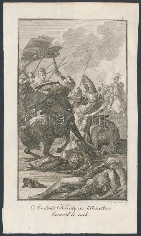 Blaschke János (1770-1833): "András Király az ütközetben lováról ... https://www.darabanth.com/de/342-Fernauktion/342.0/Gemalde-und-Grafiken/Stich~500003/Blaschke-Janos-1770-1833-Andras-Kiraly-az-utkozetben-lovarol-le-esik-rezmetszet-13-5~II1040585