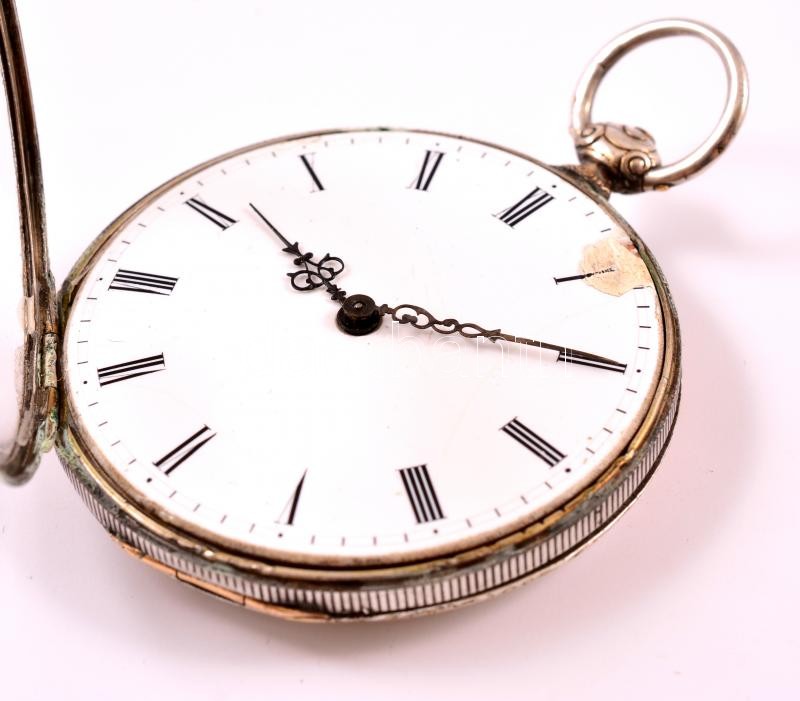 Ezüst (Ag.) felhúzós zsebóra, kulccsal, sérült porcelán számlappal, je... https://www.darabanth.com/de/342-Fernauktion/342.0/Juwelen/Juwelen~500032/Ezust-Ag-felhuzos-zsebora-kulccsal-serult-porcelan-szamlappal-jelzes-nelkul-muko~II1928567