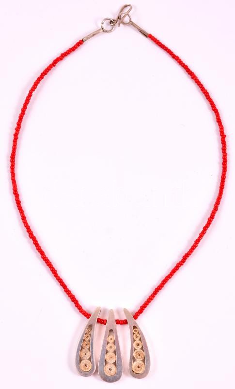 Beschreibung: Ezüst (Ag.) medálos korall nyaklánc, jelzés nélkül, h:30 cm, bruttó:13 g
