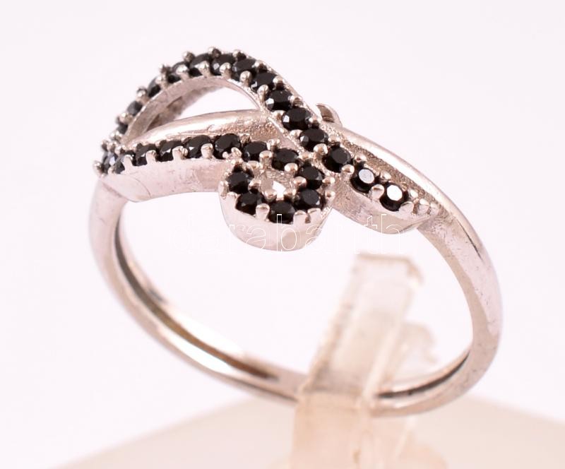 Beschreibung: Ezüst(Ag) apró fekete kövekkel díszített gyűrű, jelzett, méret: 53, bruttó: 1,8 g