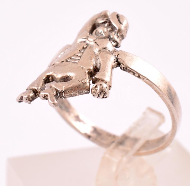 Beschreibung: Ezüst(Ag) bohócos gyűrű, jelzett, törött, méret: 56, nettó: 2,8 g