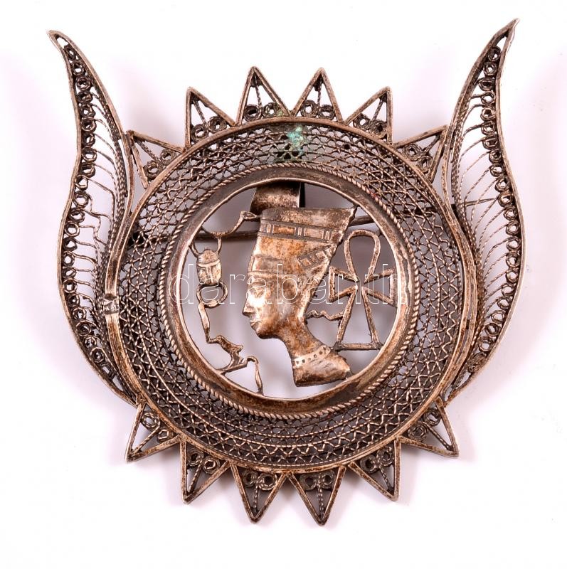 Ezüst(Ag) filigrán bross Nofertiti díszítéssel, jelzett, d: 6 cm, nett... https://www.darabanth.com/de/342-Fernauktion/342.0/Juwelen/Juwelen~500032/EzustAg-filigran-bross-Nofertiti-diszitessel-jelzett-d-6-cm-netto-20-5-g~II1928002