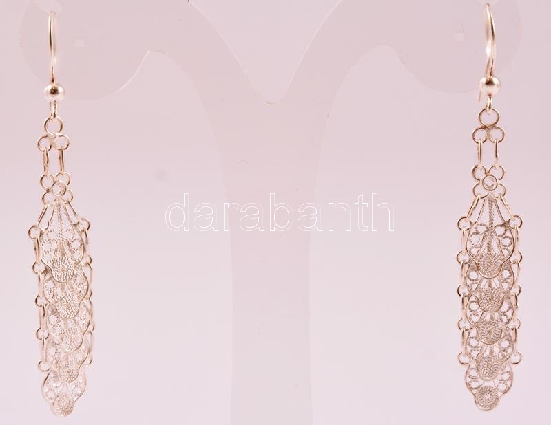 Beschreibung: Ezüst(Ag) filigrán csüngős fülbevalópár, jelzett, 6,5×1 cm, nettó: 4,5 g