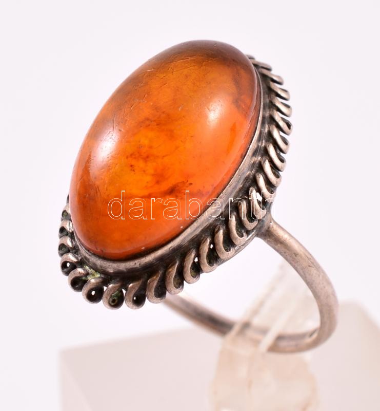 Ezüst(Ag) gyűrű borostyánnal, jelzett, méret: 59, bruttó: 4,1 g https://www.darabanth.com/de/342-Fernauktion/342.0/Juwelen/Juwelen~500032/EzustAg-gyuru-borostyannal-jelzett-meret-59-brutto-4-1-g~II1926357