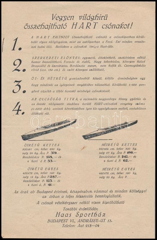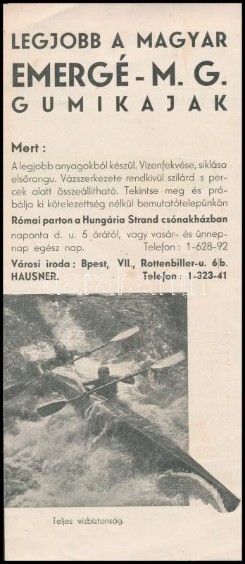 cca 1930 Emergé gumikajak és Hart csónakok reklámos szórólapja árakkal... https://www.darabanth.com/de/342-Fernauktion/342.0/Kunst-Dokumente-andere-Sammelgebiete/Drucksachen~500030/cca-1930-Emerge-gumikajak-es-Hart-csonakok-reklamos-szorolapja-arakkal-2-db~II1927685