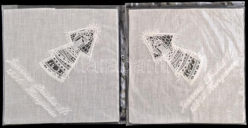 1991 2 db II. János Pál pápa látogatására készített halasi csipke terí... https://www.darabanth.com/de/342-Fernauktion/342.0/Kunst-Dokumente-andere-Sammelgebiete/Flohmarkt~500012/1991-2-db-II-Janos-Pal-papa-latogatasara-keszitett-halasi-csipke-terito-33x33-cm~II1930228