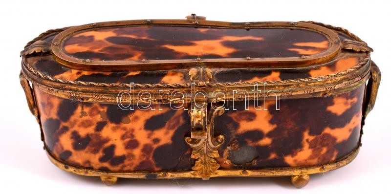Beschreibung: Antik halcsontdoboz, réz szerelékkel, sérült, 14×6 cm