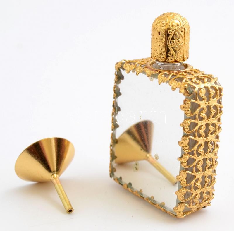 Beschreibung: Aranyozott zománc kölnis üveg. Mini. 6 cm