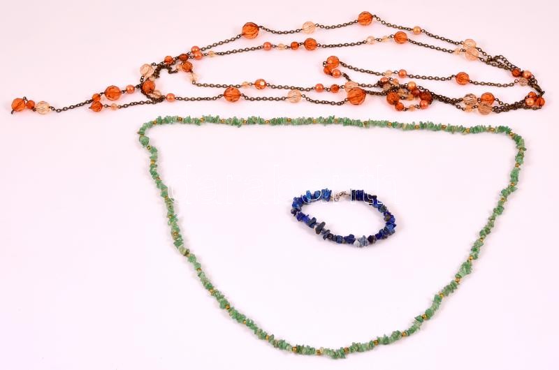 Beschreibung: Ásvány karkötő, ásvány nyaklánc, gyöngyökkel díszített nyaklánc, 3 db
